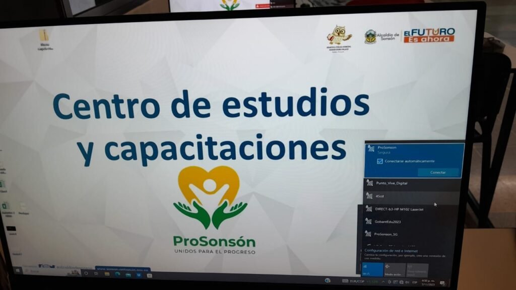 En el año 2022, ProSonsón ha dotado un aula con diez equipos de cómputo nuevos y sus respectivas licencias, estableciendo alianzas con entidades como la Alcaldía Municipal, la Biblioteca Pública, CESDE, Comfama y el SENA para ofrecer programas de capacitación gratuitos, en diferentes áreas como Programación, Sistemas, Desarrollo de Software, entre otros. Este espacio, con una ocupación promedio del 98%, ha permitido formar a más de 1.000 personas al año, impactando positivamente a la comunidad. Se ha logrando un promedio anual de 400 personas capacitadas desde su inicio.